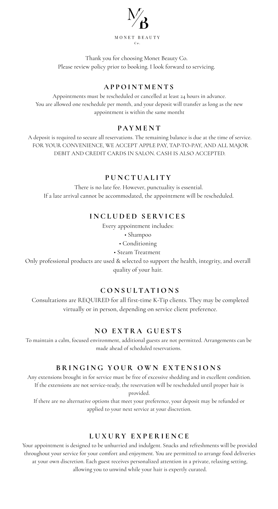 Thank you for choosing Monet Beauty Co.